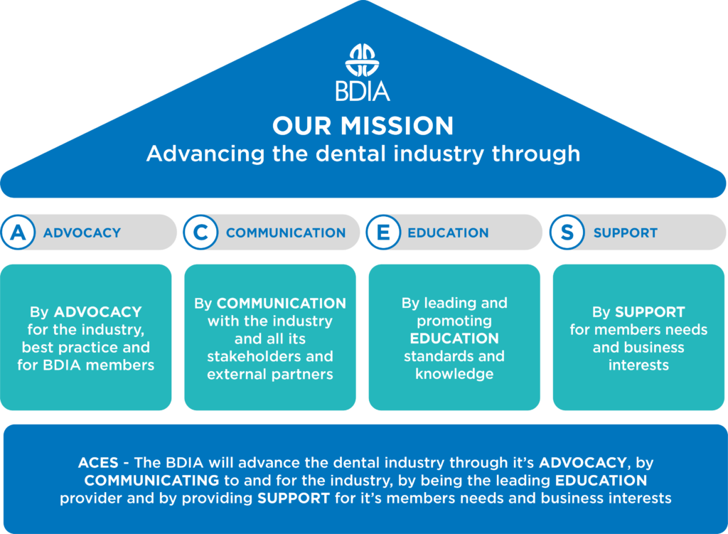 The British Dental Industry Association advances the dental sector through its four core pillars of ACES: Advocacy, Communication, Education and Support. We champion best practice and represent members’ interests, build connections with stakeholders and partners, raise standards through education, and provide practical support to help members and the wider industry thrive.